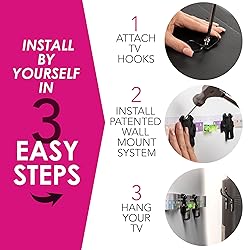 FULLY DIY NO-STUD PATENTED SOLUTION: HangSmart TV offers a complete DIY no-stud mount experience, making it a perfect choice for homeowners and renters who prefer a no-fuss, easy-to-handle installation process for their flat screen TVs VERSATILE TV COMPATIBILITY: Designed to accommodate almost any flat screen LED or curved TV, HangSmart TV mount caters to a wide range of popular brands and models, ensuring broad compatibility and user convenience ROBUST SUPPORT: Engineered to securely hold TVs up to 100 inches or a weight of 150 lbs, HangSmart TV mount stands out as a robust and reliable choice for larger television units IDEAL FOR RENTERS AND MOVERS: HangSmart TV mount is an optimal choice for renters or individuals frequently on the move, offering a hassle-free installation and removal process that minimizes wall damage FLEXIBLE MOUNTING OPTIONS: In addition to drywall, HangSmart TV can be securely mounted on various surfaces including brick, cement, wood and concrete, and walls. Using the included screws and anchors, thus enhancing its versatility. COMPLETE MOUNTING KIT: Each HangSmart TV mount comes with all necessary hanging hardware, ensuring a seamless installation process right out of the box UNIVERSAL TV MOUNT COMPATIBILITY: This mount is compatible with a wide range of TV brands including Samsung, Sony, LG, Vizio, TCL, Element, Sceptre, Hisense, and more, accommodating screen sizes from 19 to 100 inches