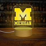 Rico Industries NCAA Michigan Wolverines Team Logo LED Desk Light Up Sign, 7 Color Changing LED Night Light, Wood Base with USB Cord Included, Ideal for Home and Desktop Decoration