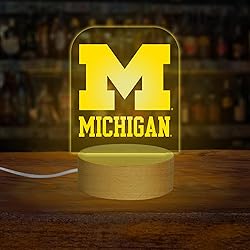 Show Love for Your Team: Demonstrate your passion for the Michigan Wolverines with a Standing LED Desk Light; Your favorite NCAA team logo is laser engraved and fits into the LED base opening; Plus, it comes with a USB cord; Show your love for the Michigan Wolverines in a stylish and practical way Experience The Joy: Our LED Desk Light is not just a desk light, it's an experience; With 7 color changing lights, this light brings a vibrant energy to your space; Made of premium wood-based materials (Made in South Carolina) ensure durability and longevity Versatile LED Desk Light: The lights can be seamlessly toggled between single-color mode, slow strobe, fast strobe, or fade in/out, offering versatile lighting options at your fingertips; Feel free to choose from a spectrum of seven vivid and captivating colors, allowing you to personalize your selection according to your preferences Ideal Gift for NCAA Fans: Our eye-catching and vibrant desk light is a must-have for Michigan Wolverines fans and College Sports enthusiasts alike; Add a touch of elegance to your bedroom, living room, mancave, work desk, and children's room for night light/decoration About Us - Since 1944, we have sold wholesale gift and novelty products in retail markets across the country, from large retailers to the small mom and pop shop; We're your one-stop-shop for all your sports-team-loving needs; From wooden signs to stickers, we've got your colors covered