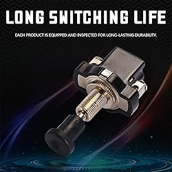 - Specifications:Material: PlasticMounting Type: Panel MountActuator Type: push-pullInternational Protection Rating: IP65Operating Voltage: 12 VoltsContact Type: Normal CloseConnector Type: ScrewSwitch Type: Push ButtonOperation Mode: ON-OFFTerminal: ScrewItem Dimensions LxWxH: 1.18 x 0.83 x 2.17 inchesWeight: 3.53 OuncesPackage Include: 1 x Car Thread ON-Off Push-Pull Push Button SwitchWhy you need our Car Thread ON-Off Push-Pull Pushbutton Switch?-Responsive, ideal switch replacement.-Easy to install and widely applicable.-Made of high quality materials, insulated and wear-resistant.-Buy our Car Thread ON-Off Push-Pull Pushbutton Switch now and take your driving experience to the next level!