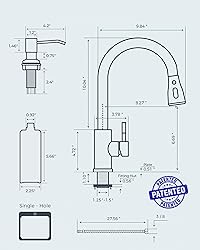 Newest Faucet Set -- The FORIOUS kitchen faucet set includes a 14.76 inch faucet and an 11.83 oz (350 ml) soap dispenser. The versatile dispenser is ideal for hand soap, dish soap and more. This set is designed to meet your kitchen needs perfectly Lead-free Material -- Our kitchen faucet is made from premium SUS 304 stainless steel for longevity use, and features a ceramic cartridge tested over 5 million times for leak-proof performance. Flow Rate: 1.8 Gallons Per Minute, saving 20% water Multi-Functional Kitchen Faucet -- The FORIOUS high arc kitchen faucet with pull-down sprayer has 3 spray modes - Stream, Spray and Pause modes for versatile use. It includes a 360° rotating head and an 18-inch retractable hose for complete sink coverage Easy to Clean, Simplify Your Life -- Our stainless steel pull-out bar kitchen faucet features a five-layer nanotechnology finish that resists fingerprint and spotting. Maintain its pristine look with just a simple wipe using a damp cloth DIY Friendly Installation -- Install our bar sink faucet effortlessly in under 15 minutes without professional assistance, it includes a 10-inch detachable deck plate for one or three holes kitchen sinks, and all Mounting hardware for a hassle-free setup Stylish Design -- This USA/CAN standard faucet for kitchen sink features a stylish, minimalist design that blends seamlessly with most kitchen styles. * Patent No.: US 11,215,289 B1/ US 11,614,174 B1/ US 12,473,719 B2