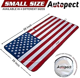 - Park with Pride, Stay Cool Inside: The Autopect American Flag Front Windshield Sun Shade Dreading that blast of heat hitting you when you open your car door? Introducing the Autopect American flag windshield sunshade – the perfect way to shield your car from the sun while showing your patriotic pride! This high-quality truck windshield sun shade boasts a bold, fade-resistant American flag design, ensuring your vehicle is ready for the hottest summers, year after year. Find Your Perfect Fit: Mirror Gap & Multiple Sizes for a Hassle-Free Sunshade Installation No more wrestling with ill-fitting sunshades! The Autopect American flag care and truck window shades come in multiple sizes – small, medium, large, and X-large – to fit most vehicles perfectly. We've even incorporated a universal fit solution with a built-in mirror gap. This clever design accommodates any rearview mirror size or type, so you can install the sunshade quickly and easily against your windshield Discover Why the Autopect Sun Blocker for Car Windshield is Right for Your Vehicle: ✓ Bold, High-Resolution Design: Protect your vehicle with a sharp, fade-resistant American flag that won't crack or peel. ✓ Superior Sun Protection: Block harmful UV rays and keep your car interior cooler, preventing cracked dashboards and faded upholstery. ✓ Say Goodbye to the Scorch: No more burning hot seats or a scorching steering wheel when you return to your car. ✓ Multiple Sizes Available: Find the perfect fit for your car with our small, medium, large, and X-large options (check our size chart for details!). Folds, Stores, Protects: The Autopect Advantage Our sun shield for car windshield folds in seconds and comes with a handy storage pouch for easy stowing in your glove compartment or trunk. Plus, installation is a breeze! Simply unfold the sunshade and secure it against your windshield. No fiddling, no tools - just quick protection whenever you need it.
