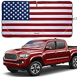 Autopect Windshield Sun Shade - American Flag Design, High-Resolution Sun Visor for Car, Truck, SUV with Mirror Cut-Out for Interior Sun Protection, Foldable Car Sun Shade (Original, Small)
