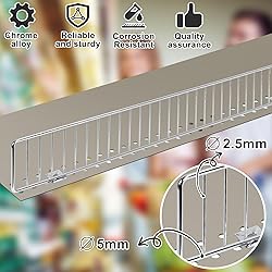 Provide Protection: our retail wire guard rail promises protection of your goods, the guard rail serves to prevent items from slipping or falling, keeping them safe, and your displays secure; Long enough, the retail wire guard rail is ideal for shops and rooms to display clearly Long Enough: these retail wire fence guard rails measure about 48 x 3 inches, which can block the displayed goods from slipping off and will not prevent you from taking out the items, convenient enough to use Modern Aesthetic: our retail wire guard rail's gray color adds a sleek, modern aesthetic that complements most retail settings, both neutral and stylish, and can enhance the overall look of your retail or warehouse space Secure and Durable: improve your store display with the retail wire guard shelf rail; Made of strong chromium alloy, the rail is durable and reliable, with metallic luster and reflective ability, which is rustproof and corrosion resistant Versatile Use: our retail wire guard shelf rails are widely applicable, suitable for stores or warehouses; Designed to fit various settings, from boutique stores to supermarkets, our retail wire guards enhance the functionality of rack space, making them neat and beautiful, providing customers with a pleasant shopping experience