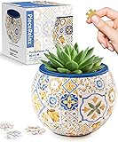 PieceRelax 3D Puzzle Planter - Retro Tiles - Danish Folklore Style, Home Decor Flower Pots for Indoor Cactus, Succulents Pots [K1104]