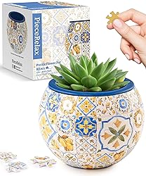Unique 3D Jigsaw Puzzle Flowerpot: With 80 curved puzzle pieces, our flowerpot puzzle provides a fun and challenging puzzle experience. Snug Interlock Design: The interlock mechanism ensures sturdy connections without glue, resulting in a beautiful finished 3D flowerpot that's perfect for display or planting. Dual Layer Design for Planting and Storage: Our dual layer design includes a cup with leaking holes and a sealed cup as a drip tray, making planting, watering, and storage easy and clean. Versatile Appearance and Gift Choice: The puzzle flowerpot's vibrant pattern reflects your unique personality and makes it an excellent gift choice for loved ones, friends, and individuals who enjoy home office decoration. Comprehensive Coverage Plan: PieceRelax's comprehensive coverage plan includes free-of-charge replacement of missing puzzle pieces, ensuring a stress-free and enjoyable puzzle experience.