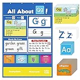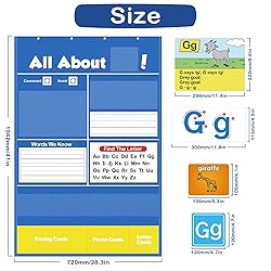 【Provides focused practice for letters】Our alphabet pocket chart gives children the practice they need to master letters from A to Z through Hands-on activities. Vibrant colors, engaging images, and interactive learning methods make this pocket chart a fun way to practice letter recognition, sound identification, handwriting practice, beginning sounds, spelling, and more. 【Various Theme Alphabet Cards】Our alphabet learning games includes 7 different activities! Children will learn all about letter, including identifying lowercase and uppercase letter, vowels or consonants, tracing letters, fun-filled chants, identifying the beginning sound, other "words we know", and find the corresponding letters. 【Homeschool Supplies & Classroom Must-Haves】This alphabet wall chart is perfect for preschool and kindergarten students and is an excellent letter-of-the-week learning activity for whole groups, circle time, and group centers. These abc learning games also serve as valuable homeschool supplies. 【Value Package】Our alphabet pocket chart set contains 4 over-the-door hooks, 104 word cards, 26 letter cards, 26 tracing cards, 26 alphabet chants. It is worth mentioning that there are 3 pockets at the bottom for easy categorization and storage. 【Unique Design】The pocket chart features a write & wipe surface, allowing kids to easily write on it. All flash cards come with a laminated layer, providing a dry-erase surface that leaves no residue. What's more, the display pocket on each side is crafted from transparent PVC film, making it resistant to damage.
