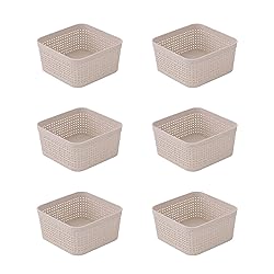 Simplify For Green Living Square Basket Organizing Set | Dimensions: 4.8"x 4.8"s 2.36" | Set Includes 6 Square Baskets | Great for Organizing Draws | Cabinets | Closets | Desktops | Natural