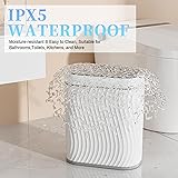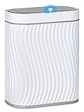 - 【SMART SENSOR TECHNOLOGY】 Our bathroom trash can is equipped with advanced sensing technology, reducing unnecessary openings and extending battery life. Simply place your hand above the infrared motion sensor, and the lid will stay open for your convenience. After 5 seconds of inactivity, the lid automatically closes to conserve energy. (Product powered by 2 AA batteries, not included) 【PERFECT SIZE】Measuring 12.2''L×9.8''W×5.7''H and holding 2.6 gallons, our bathroom garbage can is crafted from durable ABS materials, ensuring long-lasting use. 【WATER-RESISTANT DESIGN】 Thanks to our IPX5 waterproof technology, you don't need to worry about water or humidity damaging the unit. After a quick rinse, the surface remains free of water stains. 【STYLISH & FUNCTIONAL】 Our trash can features a sleek, unique design with novel wave stripes that not only add visual aesthetics but also provide anti-slip functionality. Its modern oval shape makes it a perfect fit for bathrooms, kitchens, and other rooms, optimizing space usage. 【TRASH BAG FIX RING】 The removable trash bag fixed liner ensures that trash bags can hold heavier waste securely. Just place the liner inside and attach a trash bag to keep it discreetly hidden.