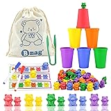 - Bmag Counting Bears newly upgraded 42 colorful bears set, 6 colors matching cups, 2 handheld tweezers, 11 new upgraded double sided cards to increase the difficulty of the intellectual training topics, equipped with 1 portable storage bag, 2 erasable color markers, sorting bears game allows you to carry it easily without taking up much space even when you are on a trip with your kids. Adding fun to your parent-child time, it also passes the CPC lead-free test, making it 100% safe for your child.