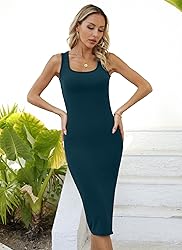 Valiamcep Women's Summer Midi Bodycon Dresses Basic Square Neck Side Slit Ribbed Knit Fitted Casual Sleeveless Tank Dress