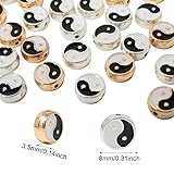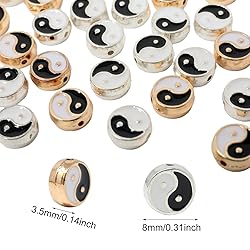 Honbay 40PCS Enamel Alloy Gossip Pattern Beads Double Sided Yin Yang Beads Flat Round Taoism Tai Chi Spacer Loose Beads Yoga Meditation Beads for Earrings Necklace Bracelet Jewelry Making DIY Crafts