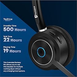 TruVoice BT85 Wireless Bluetooth Headset with V5.2 USB Dongle | Noise Suppression Speakers and NC Microphone | Fast Charging with 22 Hour Talk Time - Connects with 2 Devices Simultaneously