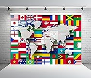 BELECO 8X6ft Fabric World Flags Backdrop World Map International Flag Country Flags Background for Themed Party Decorations Home Decor Photo Booth Studio Props