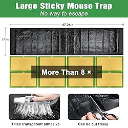 Catch Them All: Our oversized sticky mouse trap is 47.2 * 11'' with more than 3,000 inches of coverage, making it effective for catching rats, mice, and pesky crawling rodents. Say goodbye to uninvited guests in your home! Year-Round Protection: Unlike traditional glue boards that may not work well in wet or damp areas, our glue traps for mice and rats are effective year-round. When placed rat traps indoors under normal conditions, they can last up to a year. Good Quailty: Our sticky mouse trap is made with secure super glue. If you need to help the small animal in the mouse traps indoor for home, simply use mineral oil or olive oil to clean the glue. Easy to Use: Simply unroll the sticky pads for mice, line the center with a mouse bait like peanut butter, and place the glue traps for mice and rats in a passage where the rat is likely to pass through. Weigh down the corners and dispose of the sticky mouse trap with ease once the mouse is caught. Versatile Use: Our mouse traps indoor for home can be used in a variety of settings, including residences, restaurants, warehouses, and industrial buildings. They can be used both indoors and outdoors, and are a great alternative to other products. Placing multiple sticky traps for mice and rats in multiple locations increases the likelihood of catching rats.