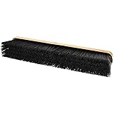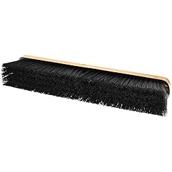 18" Wide polypropylene-bristle push broom head is perfect for general workshop and warehouse cleanup The black polypropylene bristles have a 3" trim length, set into a durable wood block A threaded handle connection offers wide compatibility to common broom handles. Handle is not included. Polypropylene is a strong synthetic fiber that is lighter in weight than other plastic materials and will outlast ordinary fibers. It's resistant to oil solvents and detergents. Will not load, curl, or mat. This broom head is great for sweeping stubborn dirt even on rough or uneven floor conditions