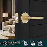 Mega Handles Ralph Passage Door Handle - 1 Pack Reversible Gold Door Handle, Heavy Duty No Lock Door Handles Interior for Closet & Hallway, Fits All Standard Door Sizes - Satin Brass