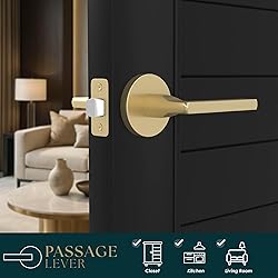 - Transform your interior spaces with the exquisite Mega Handles Glamor Passage Lever Door Handle Set in stunning Satin Brass. This passage door handle combines modern door handles interior aesthetics with robust functionality, creating a truly high end door handles statement. Designed as a heavy duty door lever, it's the ultimate solution for spaces where free and easy access is desired, making it a perfect door handle without lock for hallways, closets, and common areas.This passage door lever is ideal for homeowners seeking to upgrade their interior door handles with both style and unhindered access. Perfect for a closet door handle, hall and closet lever handles, or any passage door where privacy locking isn't needed. If you appreciate modern interior door handles designs, or seek gold interior door handle options, this set is for you. It's also suitable for those looking for a door handle without lock that fits seamlessly into a contemporary aesthetic, making it an excellent choice for a modern door handle interior project or renovation.This modern door handle, with its square door handles design, fits all standard door sizes, and is incredibly easy to install with all screws included. This interior door handle combines luxury with the practicality of indoor door handles, making it a standout among interior door levers. Experience the elegance of a door handle gold and the assurance of a smoothly functioning, stylish addition to your home. It's also a fantastic door handles interior no lock option for any home update.With the Mega Handles Glamor Passage Lever Door Handle Set, we aim for a blend of captivating design, uncompromising quality, and effortless functionality. This passage door handle set transforms your living space into a haven of seamless flow and style, ensuring lasting aesthetic appeal for every indoor door handle