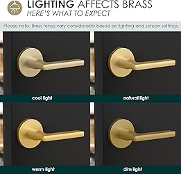 LIGHTING IMPACTS FINISH: Brass tones can look lighter or deeper depending on screen settings & lighting conditions like natural, warm, cool, or dim lighting FITS YOUR STANDARD DOOR: Mega Handles champagne bronze door handle has an ideal size and full installation hardware with Adjustable Latch, screws and everything you need to get it installed in minutes in any stadard door size SMOOTH PASSAGE FUNCTION: The non-locking passage door lever function encourages a sense of freedom, allowing effortless entry and exit, perfect for connecting living areas and keeping closets readily available REST EASY WITH ENHANCED PROTECTION: Feel the comfort of knowing your door is secured by robust hardware. Designed with good quality, durable components, these interior door handles offer enhanced safety and stability, allowing you to rest easy with reliable, long-lasting performance for your peace of mind SEAMLESS SETUP, INSTANT UPGRADE: Enjoy immediate transformation with minimal effort. Our door levers provides an easy installation process that fits standard doors perfectly, offering unmatched convenience for a quick and satisfying home improvement project