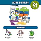 - Unlock hours of imaginative play with the Learning Resources New Sprouts All-in-One Toolbox—a complete toy tool set designed for toddlers and preschoolers. This vibrant 18-piece set includes a sturdy toolbox, hammer, wrench, circular saw, screwdriver, tape measure, nails, bolts, nuts, and wood pieces, all crafted from thick, durable plastic to withstand energetic play. Each tool is sized perfectly for little hands, with smooth edges and chunky shapes that make them safe and easy to use for children ages 2 and up. Kids can pretend to build, fix, and create just like adults, fostering creativity and dramatic play while developing essential fine motor skills and hand-eye coordination. Parents and caregivers will appreciate the easy storage: every piece fits neatly into the toolbox's drawers and compartments, making cleanup simple and teaching kids about organization. The set is ideal for boys and girls who enjoy helping out around the house or want to emulate their parents and other adults. Whether used in a playroom, classroom, or at home, this toolbox encourages independent play, teamwork, and problem-solving. The toolbox set features durable construction, realistic tools, and educational value, offering a quieter alternative to electronic sets and a safer option than wooden tools. The tape measure's numbers are reversed and fitting all pieces back in the box may require adult help, but these quirks do not detract from the overall quality and fun. Give your child the gift of hands-on learning and endless creative possibilities with this top-rated toolbox set.