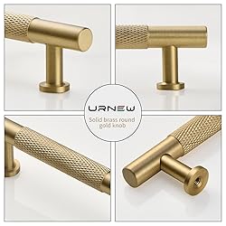 - Upgrade your furniture with Urnew 5 Inch Kitchen cabinet pull. Our knurled Gold drawer handles are made of high quality solid brass material, with exquisite surface finishing, making them a long last furniture hardware. Urnew modern brass dresser handles are also suitable for various designs of furnitures, and for different colors of furnitures. Urnew brass cupboard handles can use for kitchen cabinet, dresser drawer, nightstand, cupboard, closet and more. The gold Pull are come with 2 sizes of screws, and very easy for installation.