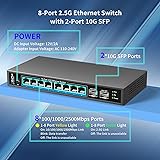 10 Port 2.5Gb Unmanaged Ethernet Switch with 8* 2.5G Base-T Ports, 2* 10G SFP+ Ports. GiGaPlus 2.5Gbps Network Switch for 2.5Gbps NAS/PC, WiFi6 Router, Wireless AP. Fanless Design, Plug and Play