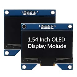 LARGE SCREEN: The display measures 1.54 inches, presenting text that is easily legible and crystal clear. DETAILS: Resolution: 128 x 64, View angle: > 160°, Support voltage: 3.3V-5V DC, Power consumption: 0.04W during normal operation, full screen lit 0.08W. Embedded Driver IC: SSD1306. Communication: I2C/IIC Interface, only need two I / O ports. COMPATIBILITY: It compatibles with R3 board and Mega, Raspberry pi, 51 MCU, STIM 32, etc. CUSTOM FONT: As there are no fonts already programmed into the OLED controller, users may develop their own fonts by utilizing font generation software.