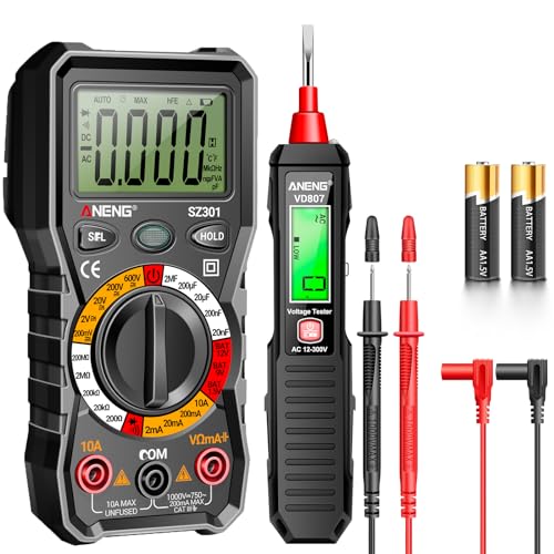 ANENG Digital Multimeter with Non Contact Voltage Tester,Ohm Volt Amp Meter,Measure AC/DC Voltage,Current,Resistance,Continuity,Diodes,with LCD Display,Flashlight,Pocket-Sized Automotive Detector