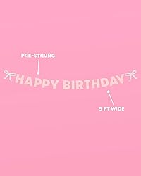 xo, Fetti Happy Birthday Banner, Foil + Pink Glitter | Princess Party Decorations, Bow Garland, 21st Decor, Coquette Graduation, Girls Bday Sign