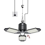 Upgraded PIR Sensor: the plug in garage light is equipped with an upgraded PIR sensor that triggered the light only when it detects human body temperature. It automatically turns on when it detects movement of people, cars, and other objects, no false triggers by other moving objects. The sensing time increased to 60 seconds and up to 360° wide detection angle; Dusk to Dawn: the garage light motion sensor is equipped with both PIR sensors and dusk to dawn 2 sensors modules. the light will auto remains off during the day light, and automatically turns on only at night dark enviromwent, No worry about accidentally triggering the light during the day, to minimize energy consumption. Additionally, two lights are installed nearbay in the same room, they won't interfere with each other ; 3 Modes: Mode 'I': ALWAYS-ON mode: the garage light keeps ON like a regular light. You can turn it on/off by a switch on the wall. Mode 'O': OFF mode, light turns off. Mode 'II': SENSOR mode. Please note that when entering the Motion Sensing mode for the first time, the sensor will into a 15 second self-check mode which the light will auto ON 15 S and auto OFF, then the motion sensor garage light will enter into a normal motion mode(trigger at night by human movement and auto off in 60s); 8000LM Bright & Reliable Quality: motion sensor garage light plug in built-in 159pcs energy-saving LED chips and with 3 deformable panels , the plug in motion light provides a total output of 80W and a brightness of 8000 lumens at a daylight of 5000K. It delivers the best indoor lighting experience. Equipped with the latest LED technology and a stable constant current driver, up to 50,000 hours lifespan, it ensures long-lasting performance; Plug-in and Work: 3.28ft soft power cable, no complex operation just plug-in and play, don't need to install the socket in advance, which is more flexible to use for different scenarios,no usage restrictions. garage light with motion sensor can be used not just in garages, but in storage rooms, warehouses, workshops, basements, barns, studios, attics, utility rooms, laundry rooms and other areas where bright lighting is needed; Widely Use: the led shop light can be used for garage, barn, utility room, warehouse, shops, basement, high shed factories, logistics centers, exhibition halls, sports hall, mining, toll stations, supermarkets, parking lot, gym, bay, laundry room and many more, motion sensor shop light is ideal for high ceilings and wide areas indoor lighting