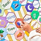 SIMPLE WORDS PUZZLE PAIRS: So many sounds these words contain! Match the pairs and grow your brain. These simple words will help you read, a skill you're surely going to need! BUILDING BLOCKS TO READING: A basic pre-reading activity. Create Phonemic awareness. COLORFUL COMPONENTS: Includes 33 hexagon shaped puzzle pairs to match. Match pictures to word. Large and sturdy pieces with vibrant imagery. SUSTAINABLY SOURCED: Made with recycled board and printed on FSC-certified paper using vegetable-based inks.