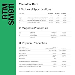 EXCLUSIVE STUDIO QUALITY : High output legendary BASF’s Studio Master 911 formula tape offers professional-grade audio fidelity and performances, ideal for studio recording and mastering with premium analog sound - Magnetic formula produces warm and colorful sound properties HIGH OUTPUT WITH LOW NOISE : Designed with superior dynamic range, providing smooth, low-noise playback for a true analog experience DURABILITY FOR LONG-TERM USE : Engineered to maintain sound fidelity over time, making it perfect for both everyday recording and archival purposes - Possible recording time - 7,5ips (19,05cm/s) : 66min ; 15ips (38,1cm/s) : 33min PRECISION MAGNETIC COATING : Advanced coating technology delivers rich detail in recordings, ensuring accurate and outstanding sound reproduction - Thick magnetic coating provides wider dynamic range and signal-to-noise ratio. Thick PET base film ensures excellent mechanical stability and high speed winding properties; no print-through effect MADE IN FRANCE : Manufactured by RTM, a trusted brand with a legacy of BASF/AGFA formulas and involved in magnetic tape production with over 40 years history and experience producing top of the range professional audio tapes