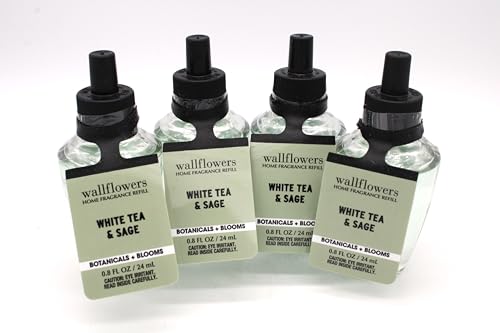 Generic White Tea & Sage, Bath and Body, Wallflowers Fragrance Refill, 0.8 fl oz, 4 pack, Light Green