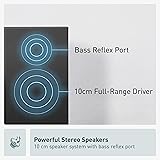 - 20W (10W+10W) de salida RMS para un sonido claro en un paquete compacto: reproductor de CD, radio y reproducción Bluetooth inalámbrica todo en uno, junto con altavoces estéreo; con woofer de 10 cm y tweeter de 6 cm con puerto de reflejo de bajo