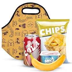 Popfunk Soft Neoprene Lunch Bag, Lightweight, Insulated, Reusable for School, Work, Office (OS, Yellowstone - Natural Pattern)