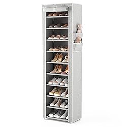 - VTRIN Vertical Narrow Shoe Rack Organizer Tall Shoe Rack for Closet Entryway 10 Tier Non-Woven Cover Shoe Shelf Holds 20-22 Pairs Free Standing Shoe Storage Cabinet with Dustproof Cover, Multi Color