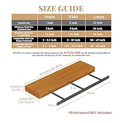 P.S.:The backplate of this floating shelf bracket is 1 inches, suitable for wood boards with a thickness of 1.5 to 2 inches. Please confirm the size before purchasing (Note: shelf is not included). 【What You Get】1pc floating shelf brackets, screws, anchors ,route bit, drilling jig, auger bit, and routing jig. 【1 inch Floating Shelf Bracket】Previously, Craftersmark long floating shelf bracket backplate was 1.5 inches high,for live edge or hardwoods. To meet different needs, we have specifically designed 1 inch floating shelf bracket that accommodates wood thicknesses of 1.5 inches to 2 inch, making it ideal for lumber, butcher block and thin wood. 【Heavy Duty Shelf Brackets】This metal shelf brackets use 5mm strength galvanized steel, superior to the 3mm thickness bracket common in the market. This robust backplate provides exceptional load-bearing capacity, can hold 150 lbs when installed correctly. Additionally, our pipes have a wall thickness of 1.5mm, compared to the 0.9mm found in other brackets, enhancing durability. Our large shelf brackets & supports excels in load capacity, stability, and durability. 【Floating Shelf Bracket Stud Mount】The heavy duty floating shelf hardware feature precisely designed pre-drilled holes, each 0.8 inches long. The adjustable holes accommodate various load beams, enhancing accuracy compared to single-hole designs. If the initial hole placement is off, you can easily adjust to align with the studs, reducing the need for repeated drilling and protecting the wall from damage. This ensures more convenient, efficient and secure installation experience. 【Hidden Shelf Brackets】The invisible shelf bracket feature unique fully concealed design, offering unparalleled aesthetics. By hiding brackets entirely within wood, we achieve 360° invisibility, showcasing extreme beauty and elegance. Unlike L-shaped or triangle shelf bracket, our fireplace mantel brackets adds harmony and sophistication to your room. Eliminate clutter and unsightliness of exposed brackets,creating clean,elegant storage space that seamlessly blends with your home decor. 【Easy to Install】Our decorative floating shelf bracket includes all the essential installation tools, making process quick and hassle-free. This heavy duty shelf brackets with jig makes your installation more efficient and convenient, saving you valuable time and money. Choose our heavy duty floating shelf bracket kit for smoother and more enjoyable home storage experience!