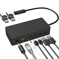 [Strong scalability, stable compatibility] The 10-in-1 surface docking station has the interfaces you may need, and 10 interfaces can be used at the same time. To meet your expansion needs. [Minimal design and lightning fast] The surface docking station uses surface connection technology, which can be charged through a cable, and the high-speed transmission of video, audio and data keep your desktop tidy. The docking station has two MINI DP ports to connect to the monitor. . The resolution of the single DP interface is 4K*60hz. When the two interfaces are output at the same time, the resolution is one 4K*30HZ and one 1080P*60HZ. [Surface Dock is quick and easy to use]: Connect your peripherals to the Surface Dock, and then connect the magnetic surface connection cable to your device. The docking station is compatible with Surface Pro 12/11/10/9/8/X/7/7+/6/5, Surface Pro 2017, Surface Laptop 7/6/5/4/3/2/2+,Surface Laptop,Surface Laptop Go 3/2,Surface Laptop Go, Surface Book2, Surface Book, Surface Go 4/3/2/1,Surface Go and computer peripherals. [Extended function]: The docking station is equipped with 4*USB 3.0, which can connect USB interface devices such as U disks, or charge mobile phones and other devices. 3.5 Audio can be connected to audio equipment such as earphones and speakers. The gigabit network card port supports gigabit network cable access to ensure your Internet speed. The dual MINI DP interface can connect two external monitors to meet your daily needs. "🤗What You Get: 1 Year Warranty with Replacement Coverage,1*Surface Dock,1* 90W Power Supply,1*AC Power Cable, 1 * instruction manual. customer satisfaction is our primary goal. If you have any questions, please feel free to contact us. We serve you wholeheartedly."