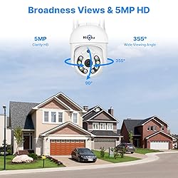 5MP HD Viedo& Color Night Vision:5MP(2560*1920) security camera, super HD image, let you see the every details clearly. Wireless camera with bright built-in floodlights for outdoor, even in extremely dark environments, it can display very clear images, extending your night vision by at least 65 feet. Pan Tilt 360 View& IP66 Waterproof:Vertical 90 °, horizontal rotation 320 ° enables you guarding property on the App at any time, anywhere, no blind spots. IP66 waterproof and dustproof, use high-quality materials, easily withstand the bad weather. 2 Way Audio& Remote View:Wifi security camera enables you talk with you family or visitors on your mobile phone, what's more, you can warn and drive away the suspicious person to leave your home. Wireless ptz camera support live view on your mobile phone and windows pc through download Free APP "EseeCloud". Motion Track& Alarm:Hiseeu outdoor camera support smart detection and motion track, When an object movement is detected, the camera will track the object and record it, and you will receive alerts message directly on your IOS/Android device from the app immediately. You won't miss any important moment. Compatible With Hiseeu Wireless System:5MP WiFi camera not only use independently on mobile phone, but also work with wireless camera system. Sharing the system HDD sotorage. no need fees.
