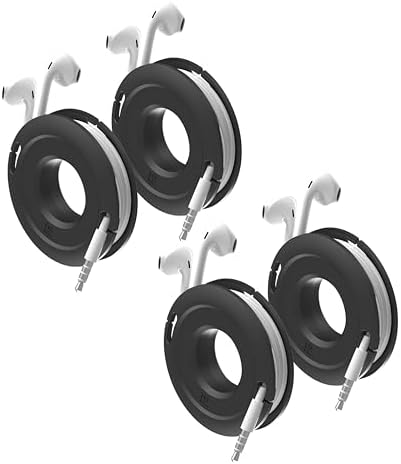 Side Winder Mini and Max Headphone, Earbud and Charging Cable Winder and Organizer Perfect for Wrapping Earbuds and Cords for Travel and Organization 4-Pack (Black, Mini)