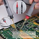 - Package Includes: 2x 43" test leads, 2x handle probes, 20 Pieces 5 Colors Alligator Clips Test Lead Set (20.5 inches / 22 AWG Copper Wire), 2x 2.0mm gold-plated probes, 2x 3.8mm gold-plated banana plug probes, 4x 1.0mm gold-plated probes, 2x 0.7mm back probe pins, 2x alligator clips, 2x tip shrouds, 1x wrench, 2x test hooks, 1x storage boxes. High Quality - The leads are made of high quality silicone,Very soft,cold and high temperature resistant,Contains A double insulated lead with 100 high-purity copper wire ensures safety, low resistance and no signal loss. Easily dealing with currents of 10A and preventing leakage issues from occurring. Soft and Comfortable Hand Grips - Heat- and cold-resistant test probes are silicone insulated and provides comfort grip,The nylon wire inside will make it withstand bending thousands of times without breaking or fraying. Test Versatility – TKDMR 45-piece test probe set extend the testing capabilities and versatility.The replaceable gold-plated multimeter test probes, alligator clips, test hook and back probe pins can be used in different measurement environments such as industrial, electronics, home and automotive.which does not easily break-off,has solid contact traits and speedy and stable measuring reaction times. Safe and Accurate - TKDMR multimeter test lead kit can help provide safe and accurate test results on electrical power measurements. Rated CAT.II 1000V,10A,Recommended for general measurements. Compatible - Multimeter leads are designed for use with any multimeter, clamp meter or test instrument. The replaceable gold-plated multimeter test probes, alligator clips, test hook and back probe pins can help expand testing capability and flexibility,The 5 Colors Jumper Wires Kit ver useful for testing. High Quality and Economy.