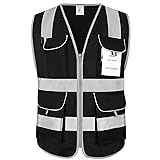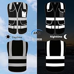 Uno Mejor Full Zip 8 Pockets Black Safety Vest, High Visibility Heavy Duty Reflective Work Vest for Construction, Utility Workers, Meets ANSI/ISEA Standard, 3X-Large