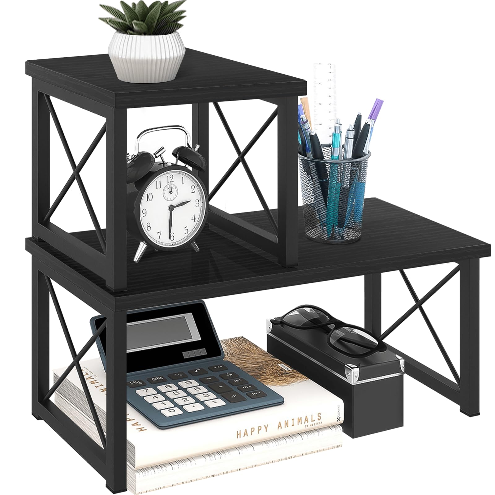 【Vendor Showcase】Display shelf has a total of three layers, suitable for displaying various small items such as soap, candles, plants, jewelry, tumblers and many more. The stepped design makes efficient use of your counter space, the raised tiers help to create an eye-catching feature for your items. It's an ideal choice for vendors, retail counters, and showcases. 【Composable Design】Need a reliable retail display stand? With our 3 tier display stand, customers will easily see your products! Use it with our other product display shelves to create the layout you want. 【Durable & Portable】Our sturdy wood cologne organizer display stand tabletop shelf won't tip over, it's made of high-quality heavy-duty particle board and supported with iron legs. The thickened iron frame ensures sturdiness and has a stronger bearing capacity. Our display risers for tabletop use are portable! Perfect for vendor booth display items. 【Multifunctional Usage】Our display is not only a table display stand for vendors event; It also can be a table top shelf used for figures, dolls collection, and decorations in the living room; Used for nail polish, perfume, and makeup on the dresser; Used for condiments, spices, cans, coffee, and tea in the kitchen. No exaggeration, it can be applied to any corner of the house. 【Quick Setup & Easy Cleaning】You can have this 3-tier display riser stand assembled in 10 minutes with detailed instructions and tools. The wooden surface is waterproof and dust-free, a damp cloth could keep the counter shelf clean. (Assembly tools and accessories are included in the package)