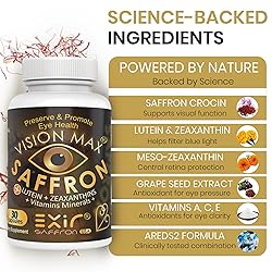 Vision Max Eye Vitamins Supplement – with Saffron, Lutein & Zeaxanthin – Nutritional Support for Eye Health, 30 Capsules