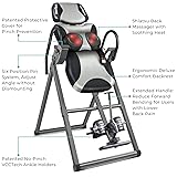 Assembly Required Ergonomic Shiatsu Back Massager with Soothing Heat Longer Ankle Holding Knob for easier release with Ergonomic Ankle Holding System--with our unique, patented No Pinch VCC-Tech U-shape Holders True Balance System for easy inverting Six (6) Position Adjustable Pin System with added Patented Protective Cover for easy positioning Large, Comfortable Backrest with Adjustable Headrest Accommodates users 4ft-10in to 6ft-6in with a 300 lb Weight Capacity Consult with a licensed physician before starting any new exercise regime. Disclaimer: inversion tables are intended to provide immediate and lasting back relief, but may not work for all customers, we cannot guarantee pain relief with the purchase of this product