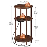 HOOBRO Small Round Side Table with Charging Station, 3-Tier Round Bamboo End Table, Compact Sofa Bedside Table for Small Space, Easy Assembly, for Living Room, Bedroom, Apartment, Mocha MA152UBZ01