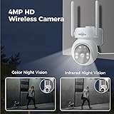 Hiseeu Solar Camera Outdoor, 4MP Wireless Battery Camera, PTZ 360° View, PIR Motion Detection, Color Night Vision, IP66, 2-Way Audio, 2.4G WiFi, No Monthly Fee
