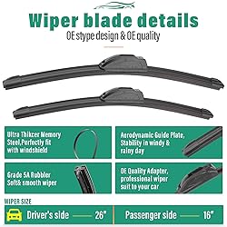 [FITMENT]: Replacement for 2018 2019 2020 2021 2022 2023 2024 Nissan Kicks 26inch + 16inch front with 12inch rear windshield wiper blades. [Super Clear Wipers]: High-quality rubber blade ensures efficient and streak-free wiping. [Easy Installation]: Easy installation process for hassle-free replacement no need for adapters. [More Quiet wipers]: Precision engineering for optimal contact and even pressure distribution ,aerodynamic design reduces wind lift and noise. [Longer Use Life]: Durable construction for long-lasting performance,resistant to UV rays and extreme temperatures for increased durability.