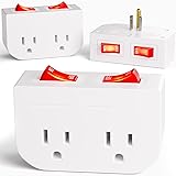 - 3Pack - POWAWINI Grounded Outlet with Double On Off Switch, Two Port Electrical Outlet Plug Switch, Wall Tap Adapter with Daul Red Indicator, 1875W,15A, ETL Listed, White