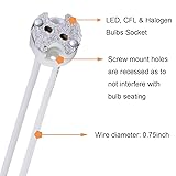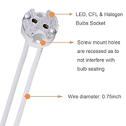 - Specifications: Temperature: 200 celsius Voltage 12V-24V AC/DC. Current: 2A (typical halogen MR16 use ~0.5A). Length: 8.8cm/3.46inch Wire diameter: 0.75inch Features: 1. Perfect for replacing burned out wiring or when replacing old Halogen bulbs with LED. 2. This bi-pin socket is designed for G4, GU5.3, G6.35, GY6.35, GX5.3, GZ4 base light bulbs. Compatible with LED, CFL and Halogen bulbs. 3. Simple replacement - Screw mount holes are recessed as to not interfere with bulb seating. Package includes: 20 x lamp socket 20 x 2 pin wire connector